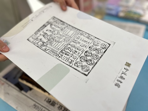 在快节奏的商场氛围里,金陵图书馆的雕版印刷体验让时间慢了下来。研磨墨块、覆纸刷印,慢工出细活,馆员在此过程中热情地为大家介绍此次印刷作品的原型源于千年前的中国,为世界上最早的纸币。当一幅完整的宋代交子印刷完成,体验者直呼“赚到了”。另一侧,戴上VR眼镜即可畅享数字阅读的体验又瞬间把众人拉入未来。通过VR设备,游客可进入虚拟图书馆,扫视多个内容丰富的主题,看知识信息通过动画模拟在眼前一一呈现。“现在的图书馆服务和印象里的不太一样了嘛,”一对母女摘下眼镜笑着回到现实,“看来是我们去少啦!”