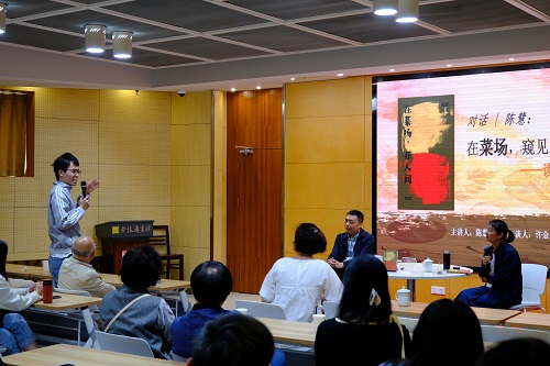晨光未熹的菜场里,总有人间最鲜活的故事在流淌。5月10日下午,金陵图书馆多功能厅内,“菜场女作家”陈慧与书评人许金晶围坐对谈,将《在菜场,在人间》里的烟火气息带入温暖的午后。这场以“在菜场,窥见人间万象”为题的读书沙龙,没有华丽的修辞,只有贴着地面生长的文字与人生,让到场读者在摊位间的寒暄、货物的堆叠、生活的褶皱里,看见平凡生命的珍贵。