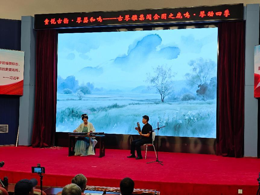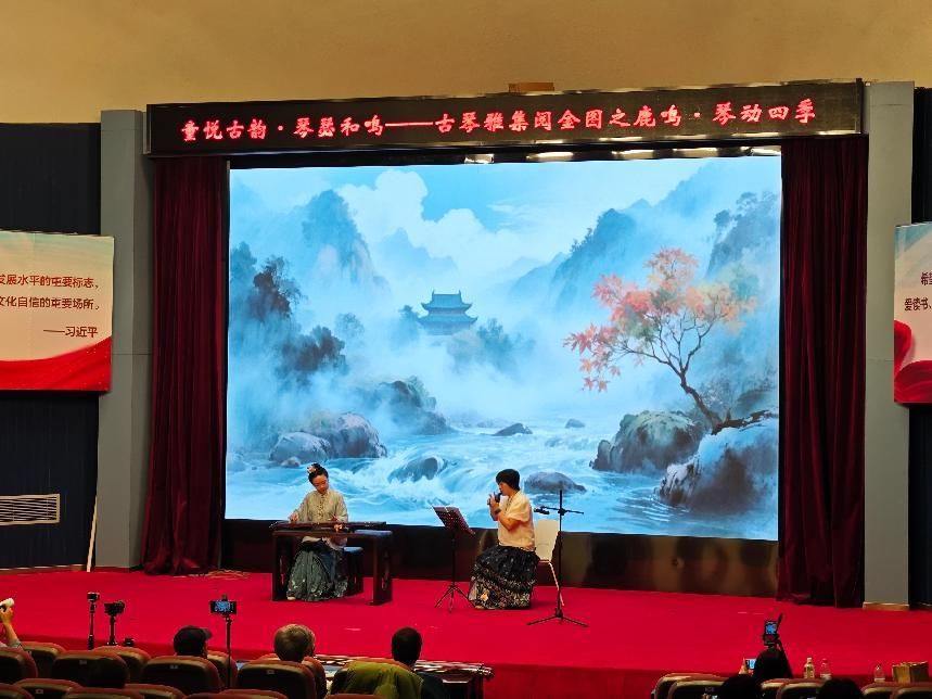 在琴乐表演环节,小读者们通过聆听古琴音律,感受到了四季主题名曲的独特魅力。《春风》《四大景》《茉莉花》《碧涧流泉》《二泉映月》《秋江夜泊》《发如雪》《梅花三弄》《秋水》等曲目依次上演,每一首曲子都如同一幅精美的画卷,将四季的美景与情感细腻地展现出来。这些曲目不仅展现了古琴艺术的博大精深,也为孩子们的心灵播下了传统文化的种子。