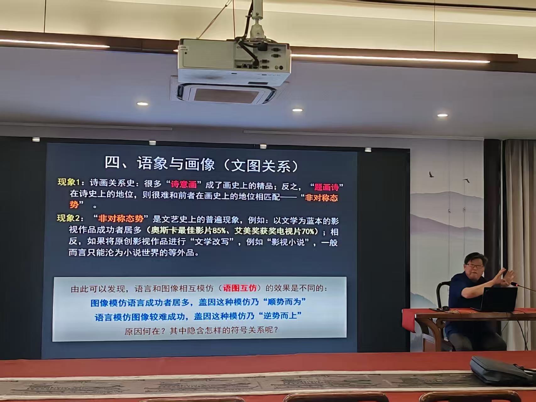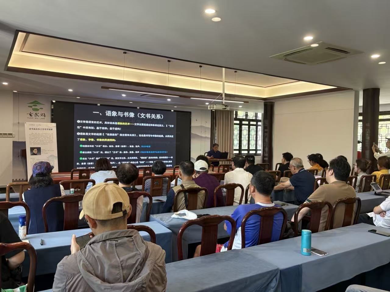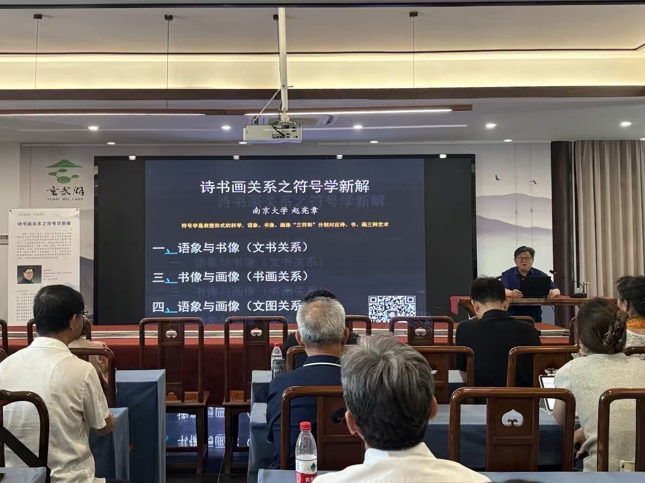 2025年5月25日下午,“金图讲坛”联合“玄武湖讲堂”,在风景秀丽的玄武湖梁洲黄册库景行楼,特邀原南京大学中文系主任、中国文艺理论学会副会长赵宪章教授精彩主讲《诗书画关系之符号学新解》。本场讲座由南京市玄武湖公园管理处、金陵图书馆主办,金陵诗社、南京大学南京校友会悦读俱乐部协办。