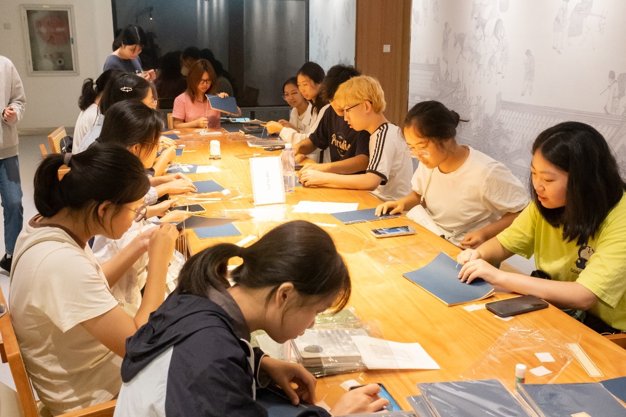 讲座结束后,针对此次前来参加活动的南京师范大学古典文献学专业学生,金陵图书馆特地在四楼古籍展陈体验空间提供了一系列的古籍相关配套活动:如 “万里归珍” 海外回流古籍展让观众直面珍贵文献;沉浸式古籍修复体验、 多形式拓印体验(活字印刷、雕版印刷、朱墨套印、滚轮印刷)、 线装书制作体验等,则让同学们得以亲手触碰历史, 在实践中深刻体会到了古籍的魅力与保护的艰辛。