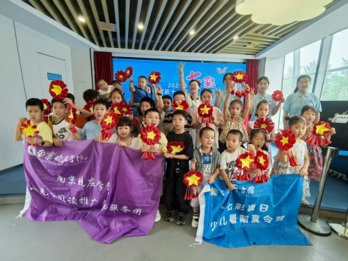 2025年7月11日下午2点半,来自南京晓庄学院的老师们来到金陵图书馆,与小朋友们一起相约“七彩夏日”少儿暑期夏令营,本期活动是蓝精灵手工坊,今天老师要带小朋友们做的手工是红星繁花爱国情挂件。