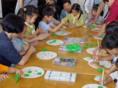 接着,借助协作小游戏、诗词诵读,以及几段精彩的视频,老师带领小读者们深化了对立夏的感受和理解。在手工环节中,孩子们用粘土和彩笔制作了属于自己的莲蓬画,大家展开想象的翅膀,小蝌蚪、小蜻蜓、小鱼儿也出现在莲蓬之间,一幅幅立夏画作的诞生更是承载着独特的盛夏记忆。