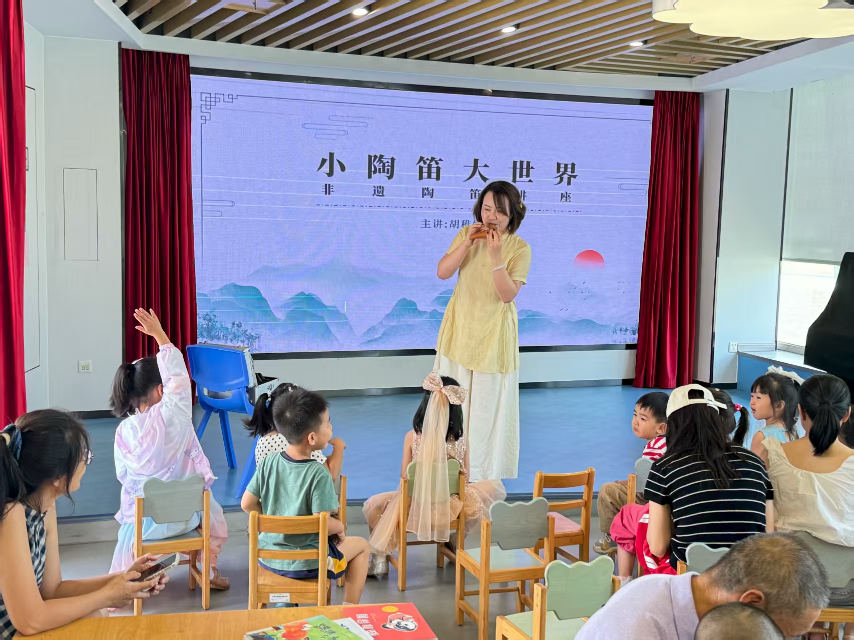 8月3日上午,金陵图书馆第十一届“七彩夏日”少儿暑期夏令营之紫藤萝大舞台活动在我馆一楼低幼绘本区准时举办。今天是乐器专场主题——“走进非遗陶笛 聆听泥土的声音”。
