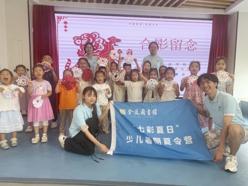 2025年8月12日下午两点半,金陵图书馆第十一届“七彩夏日”少儿暑期夏令营之“小桔灯故事会”如约而至。本次活动以绘本《妈妈的剪影》为核心,在低幼绘本区为小读者们展开了一场融合传统艺术与温暖亲情的文化之旅。来自晓庄学院的志愿者老师卞睿琦,携手22组亲子家庭,通过故事讲述、剪纸体验和互动创作,共同探寻母爱与剪纸艺术交织的动人画卷。