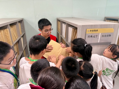 8月7日上午,金陵图书馆迎来了一群特殊的“小馆长”——21名流动儿童参加了“悦苗行动”第五期小馆长培训活动。本次活动以“探索知识殿堂 体验书香职业”为主题,通过知识课堂、实地探访、科技互动和职业体验等环节,让孩子们近距离感受图书馆的魅力,培养信息素养与公共服务意识。