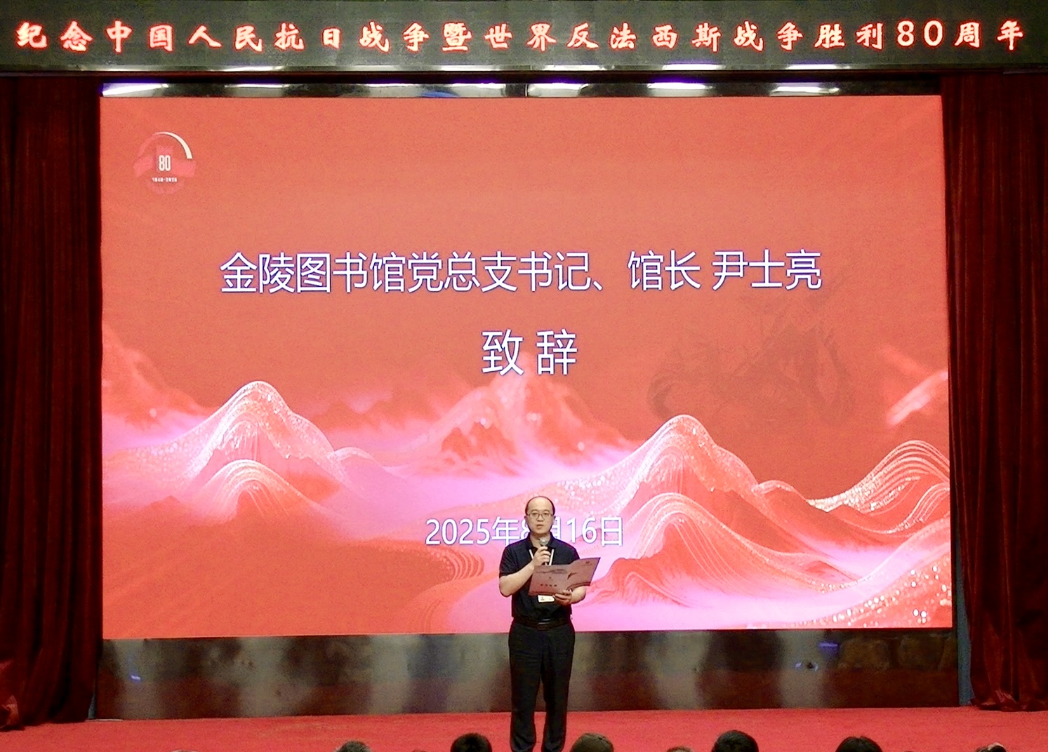 演出开始前,金陵图书馆党总支书记、馆长尹士亮代表主办方,欢迎读者们参与活动,并向文化志愿者们的辛勤付出致以诚挚的谢意。他表示,图书馆依托丰富的馆藏资源,以“阅读+艺术”的形式重温这段历史,不仅是为了铭记英雄的壮举,更是为了让铁军精神在新时代焕发光芒,为推动国家繁荣、社会进步贡献力量。