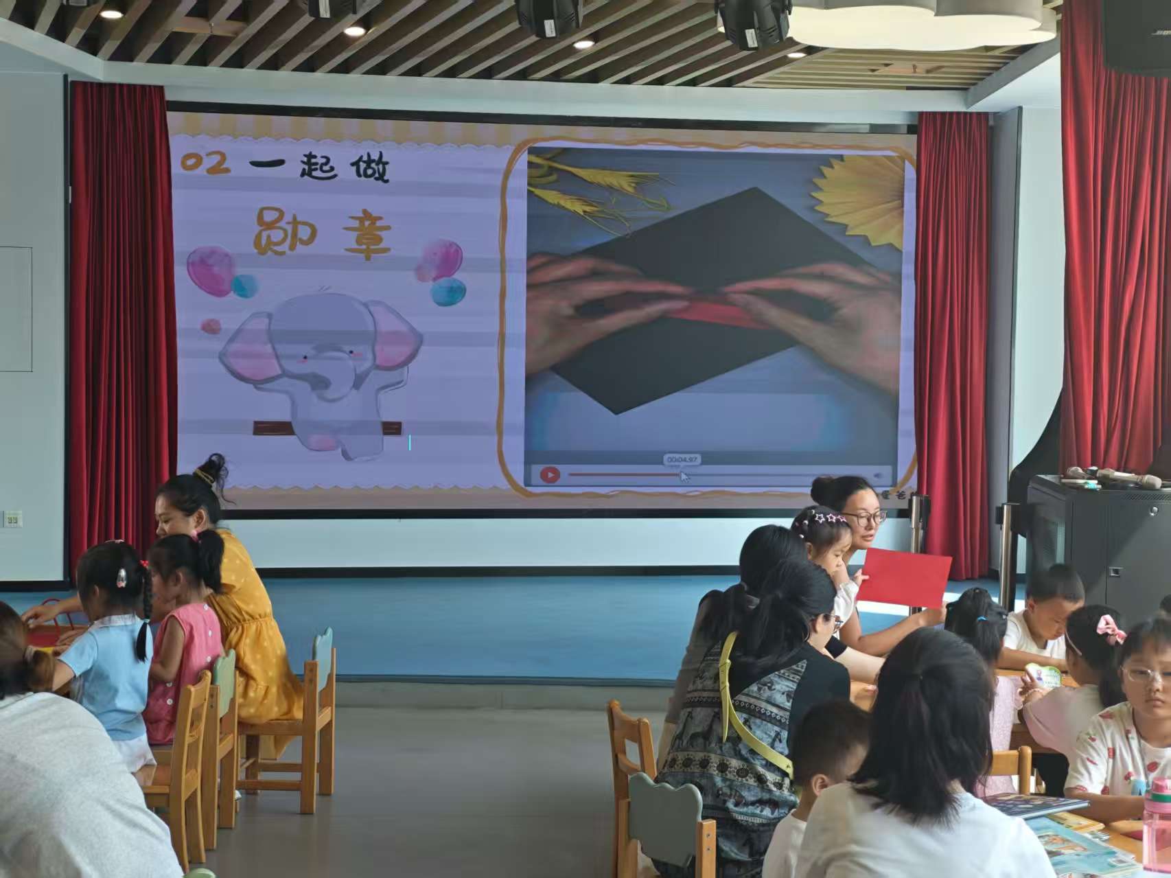 活动接近尾声时,老师邀请每位孩子带着自己的作品上台展示。最后,所有孩子和老师们一起合影留念,记录下这个充满意义与欢乐的下午。