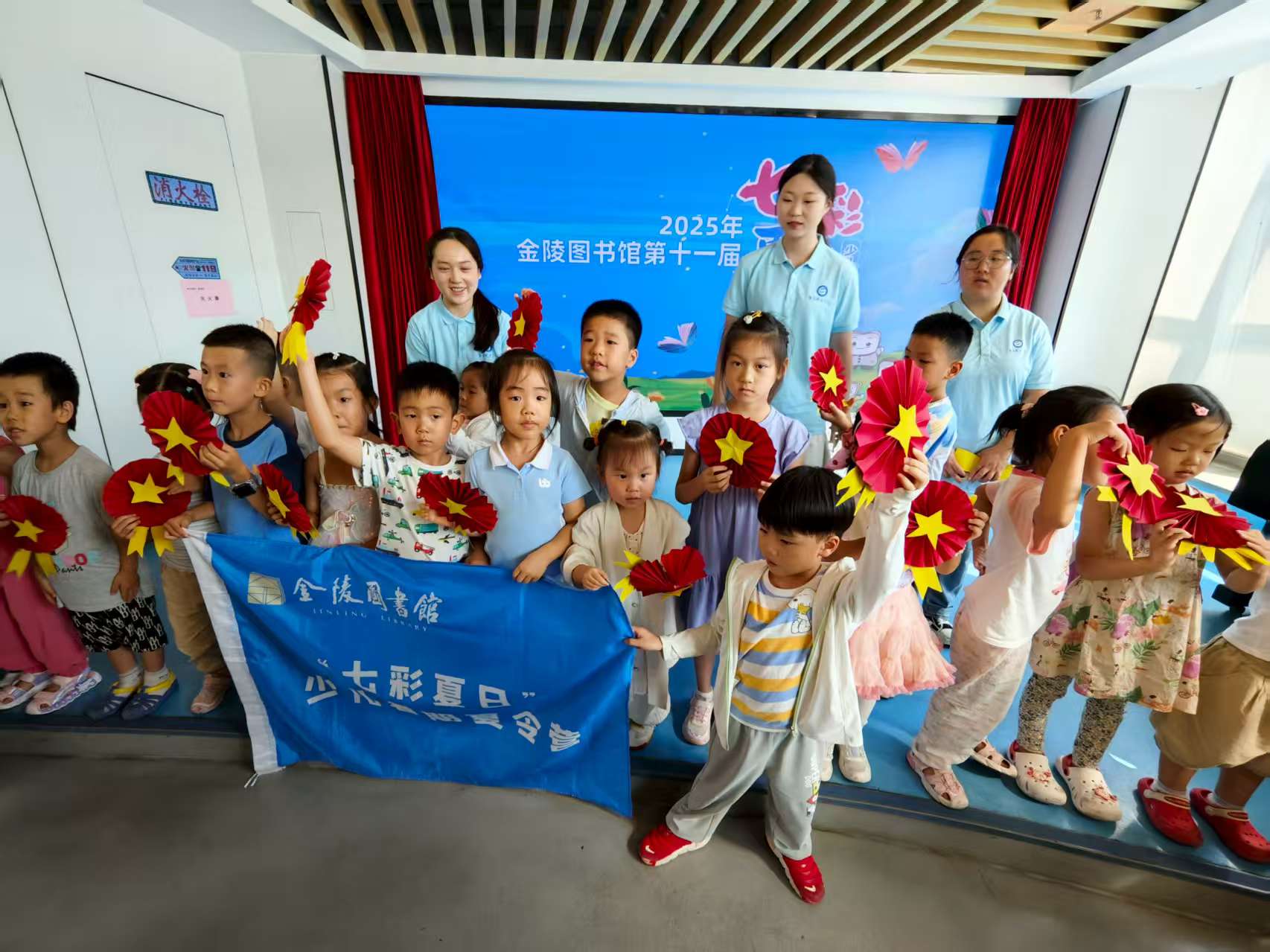 2025年8月22日下午,金陵图书馆低幼绘本区小舞台上,“蓝精灵手工坊”之“学习建党精神”活动如约而至,孩子们在书香与创意的交融中,开启了一场意义非凡的红色之旅,用巧手与童心感悟建党精神的内涵。