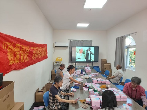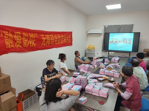 2025年8月29日上午,金陵图书馆再次走进红山街道残疾人之家,为正在做零散手工工作的残障人士放映无障碍电影,在工作之余回顾文艺经典。