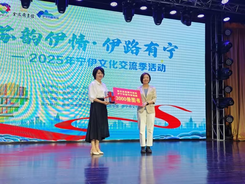 在本次文化交流季期间,金陵图书馆切实基于伊宁市读者需求,经由金图党总支党员同志进行信息汇总、图书装配等前期准备工作,在开幕式上向伊宁市图书馆捐赠了由“宁伊共阅”亲子家庭图书捐赠活动募集及金图精选提供的爱心图书共3000册。这批图书是南京少儿读者及其家庭对伊宁读者深厚情谊的充分体现,凝结着两地知识共享、文化共建的美好愿景,希望这些书籍能成为两地小朋友心灵相通的桥梁。