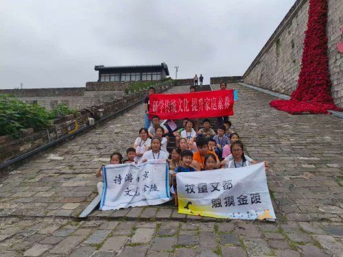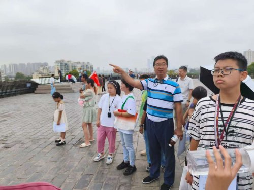 随后,仁和老师带领孩子们登上明城墙,带着孩子们远眺城外的大报恩寺塔、长干里以及雨花台的纪念碑和雨花阁等名胜古迹,并开始了诗词赏析的环节。老师带着孩子们赏析了四首诗词: