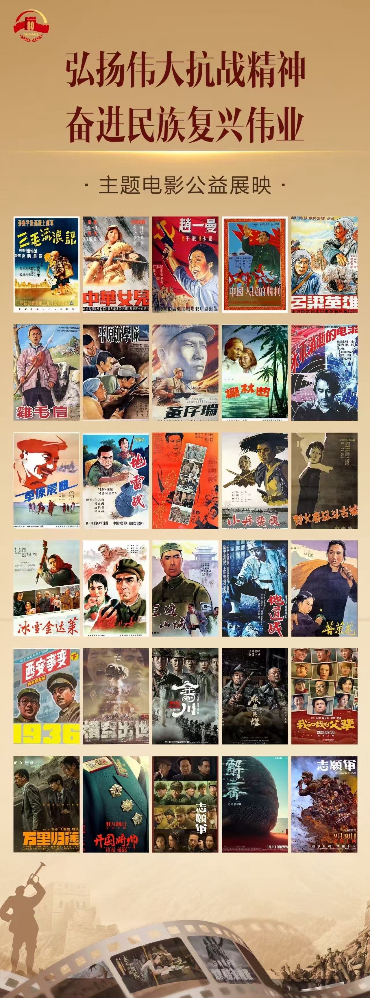 据悉,本次公益展映将持续至10月,计划在全省范围内组织500场放映,精选《中华女儿》《地道战》《野火春风斗古城》《东进序曲》等30部优秀国产影片。活动覆盖多地新时代文明实践中心(所、站)、文化馆、公共图书馆、军营及学校等多个场所,旨在让承载抗战历史的银幕记忆深入基层、走进千家万户,进一步激发广大群众的爱国情怀与民族使命感。
