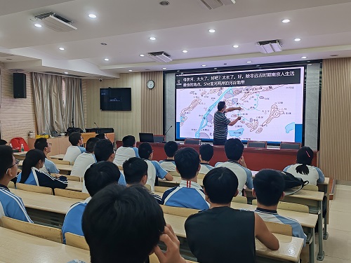讲座从“明城之基”“明城之建”“城墙之坚”“城门故事”“浴火重生”五个篇章讲述了南京明城墙从建设到新生的整个过程。讲师从南京的河流走向与山体分布等情况讲述了南京城的基础概况,又从历史发展与当时政权考量的角度,与师生们共同探讨明代城墙建设的规划。据记载,明城墙的建造方式科学先进,它有着扎实的地基,用于建设的条石重达千余斤,高效的材料质量管理体系以及严酷的责任制度,可最大程度保证城墙建设的稳固,因此,南京明城墙历经历史变革、战火侵袭后仍能在现在焕发生机,成为见证历史与展望未来的城市名片。