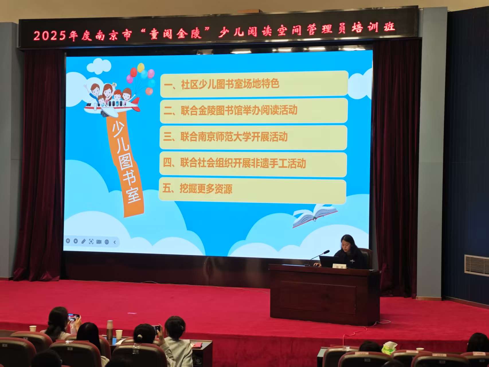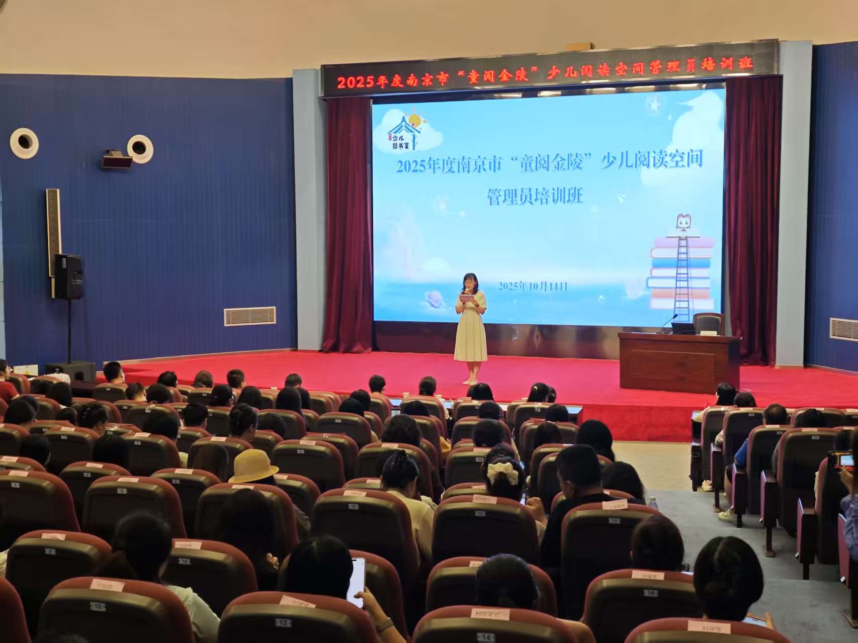 2025年10月11日,为提升全市少儿阅读空间管理员的业务能力,促进少儿阅读空间的规范管理和效能发挥,由南京市文化和旅游局主办,金陵图书馆承办的2025年南京市“童阅金陵”少儿阅读空间管理员培训班在金陵图书馆一楼报告厅成功举办。各区负责少儿阅读空间建设的工作人员、少儿阅读空间管理员等近200人参加了本次培训班,金陵图书馆少儿工作部主管张婕担任本次培训班主持人。