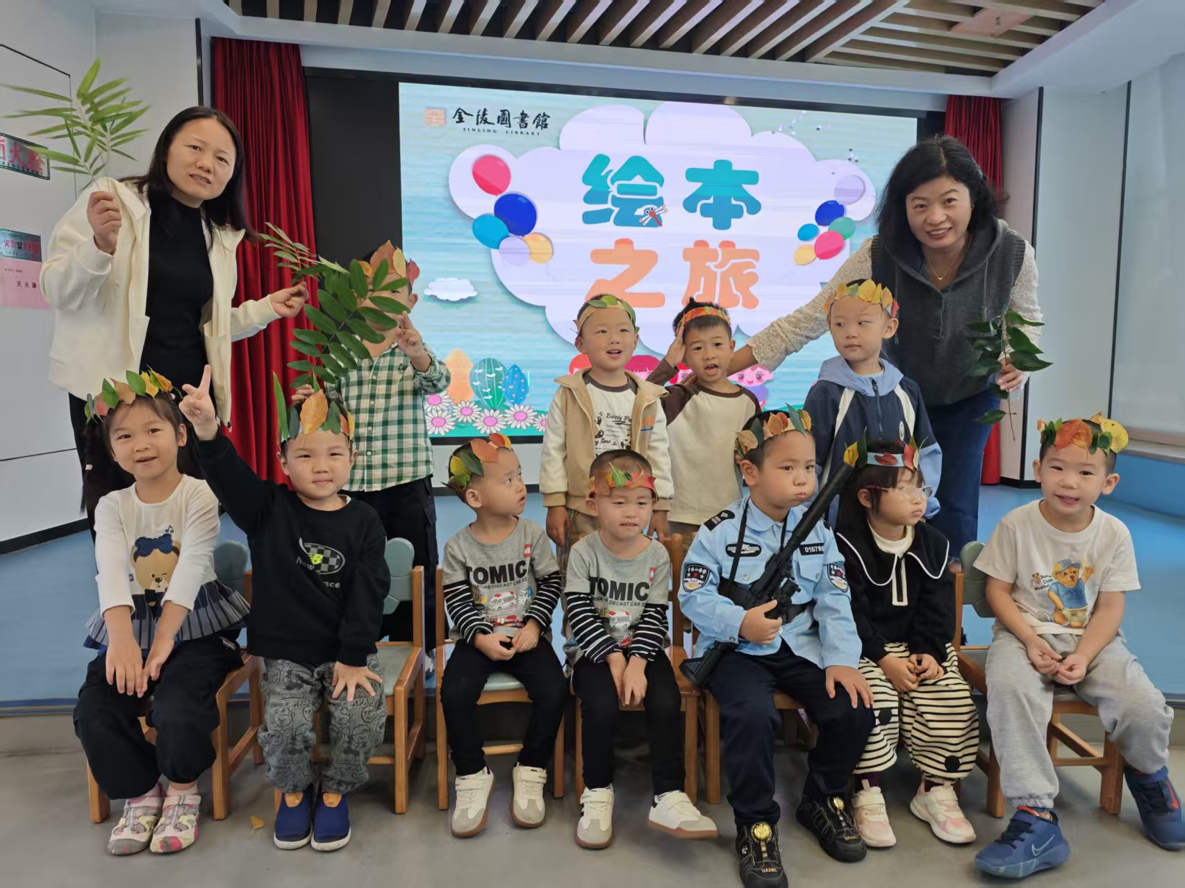 2025年10月18日上午10点,金陵图书馆“绘本之旅”在浓浓秋意中温暖开启。老师们将收集来的缤纷落叶铺满舞台,打造出一个童话般的秋日森林,带领小朋友们共读绘本《寻找秋天的颜色》。