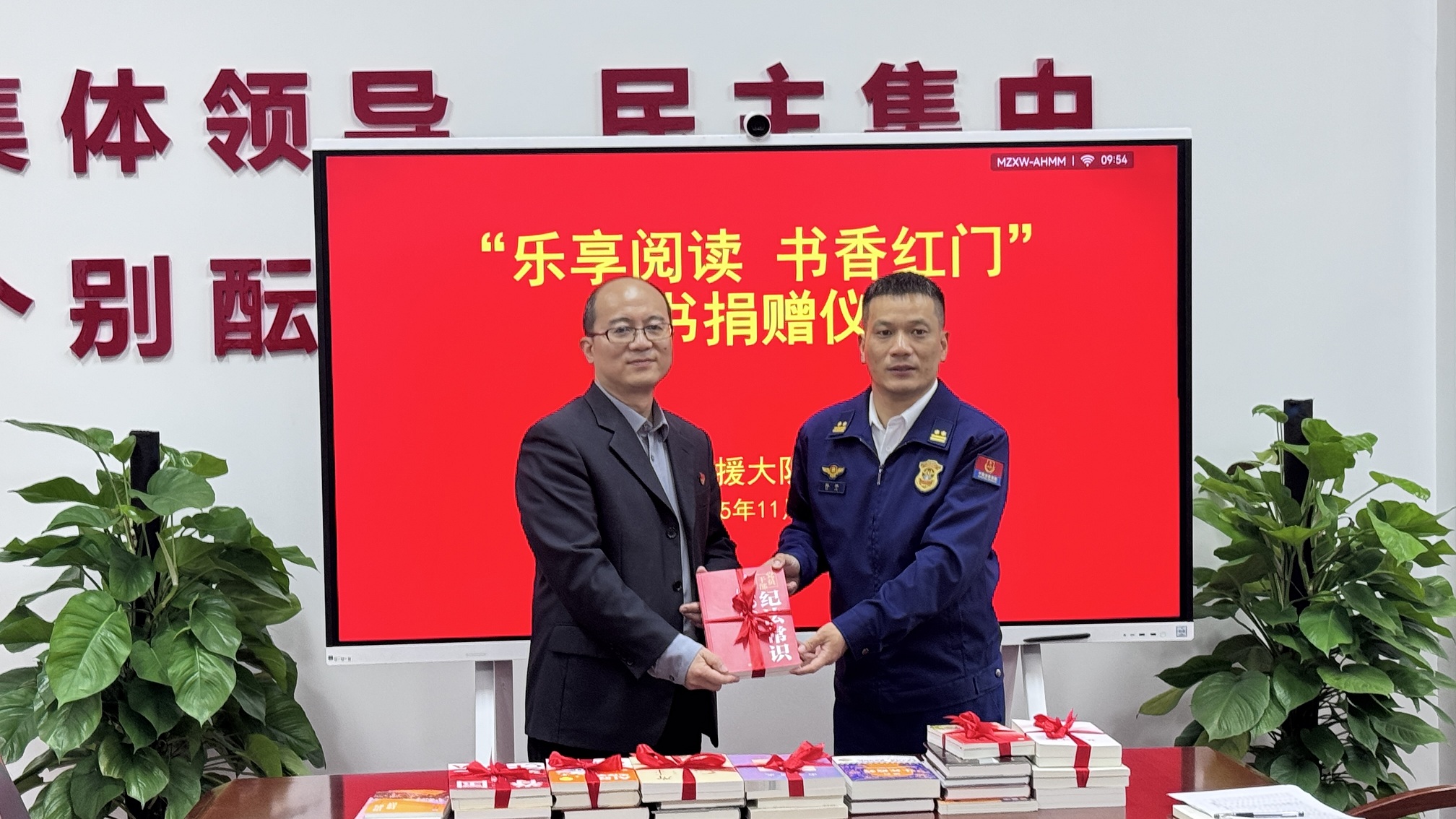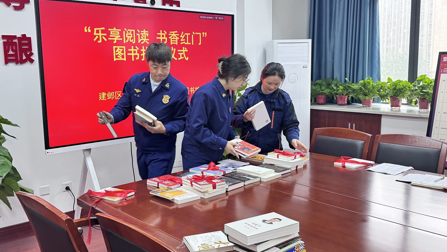 交流结束后,尹馆长代表图书馆分别向建邺区消防救援大队、建邺区兴隆消防救援中队赠送图书共计70余册。这些书籍是图书馆结合消防员们的兴趣爱好和知识需求而精心挑选的,内容涵盖军事、政治、传记、文学、生活、社会科学等各方面。