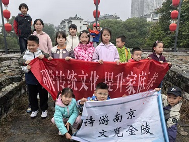 活动开始,仁和老师带领大家来到了桥面上,并介绍到,如今的东水关遗址公园由古桥、古河、古墙、古闸四部分组成,“古桥”指的是建于明初的九龙桥,就是我们现在脚下的这座桥。站在桥上,看到的这条河——秦淮河即是“古河”。放眼望去,“古墙”是指南京明城墙。“古闸”指的是上首闸与下首闸,下首闸建于清朝,用于调节内外秦淮河的水位差,民国时期又建了上首闸。