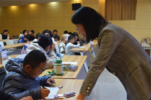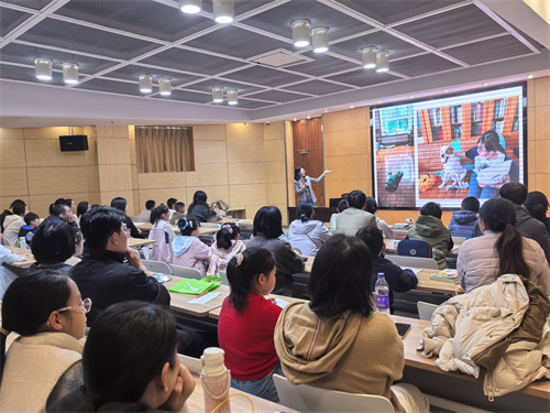 讲座伊始,谈教授以经典作品《毛毛》为引,生动阐释了“时间哲学”与亲子关系的深层联系。她通过“灰先生”与“时间花”的隐喻,引导家长与孩子共同思考:何为真正珍惜时间?如何在忙碌生活中守护亲情与倾听?现场互动频频,家长与孩子在故事中共情,在思考中共鸣。