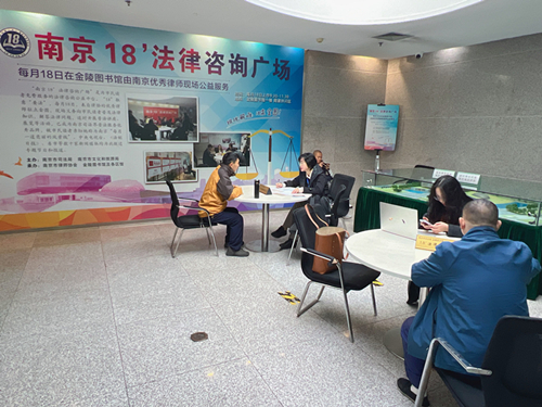 “南京18’法律咨询广场”起始于1994年12月18日,由金陵图书馆与南京市司法局、市律师协会共同创建,是一项常年面向所有市民的公益法律咨询服务。每月18日上午,南京市律师协会从全市各律师事务所选派优秀律师前来义务驻点,解答市民提出的法律问题。
