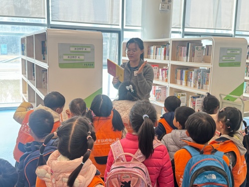 随后,孩子们来到专属于他们的“童·阅空间”。在这里,李老师用生动有趣的方式讲解了图书分类的“秘密”、书架排列的规律,并演示了自助借还机的使用方法。孩子们听得津津有味,对图书馆的智慧服务充满了好奇。