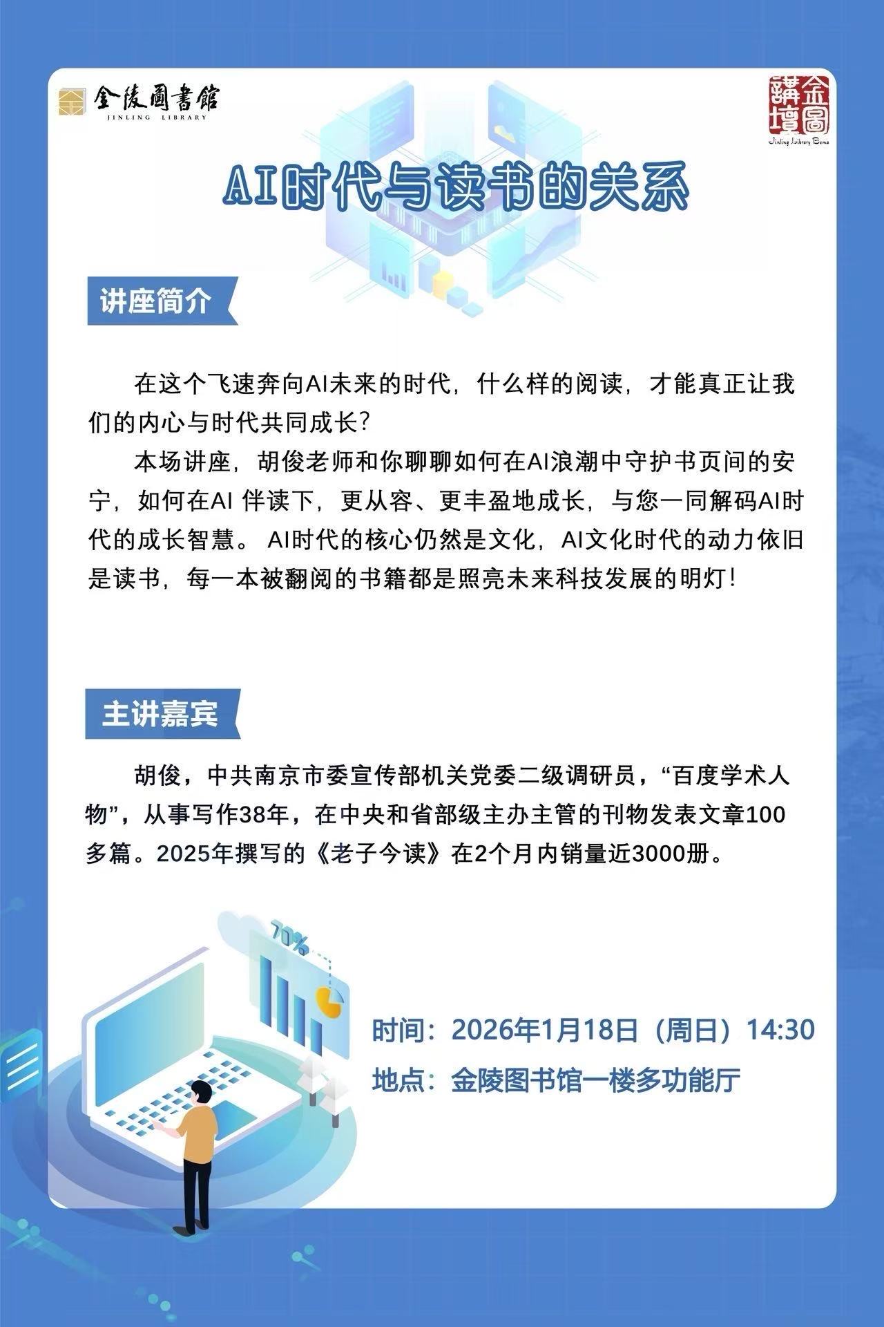 本场讲座,胡俊老师和你聊聊如何在AI浪潮中守护书页间的安宁,如何在AI 伴读下,更从容、更丰盈地成长,与您一同解码AI时代的成长智慧。AI时代的核心仍然是文化,AI文化时代的动力依旧是读书,每一本被翻阅的书籍都是照亮未来科技发展的明灯!