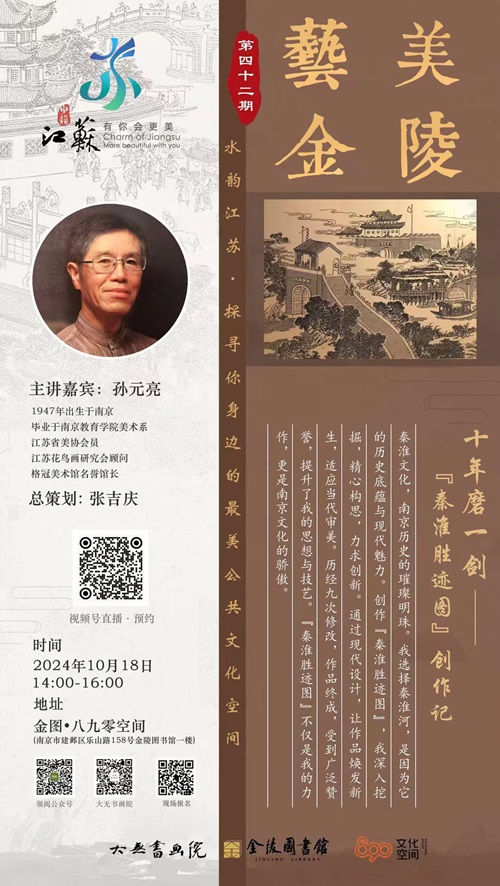 作为南京市最大的地区性河流,秦淮河有着丰富的历史文化底蕴,是南京的母亲河,被誉为“中国第一历史文化名河”。本次金图·八九零讲座沙龙邀请画家孙元亮先生以“十年磨一剑——《秦淮胜迹图》创作记”为主题,对长卷创作进行回顾,以飨读者。
