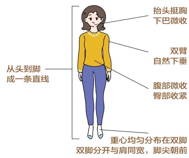 【注意】避免含胸驼背、踮脚走路及步幅过大,以减少关节和肌肉的不必要损伤。
